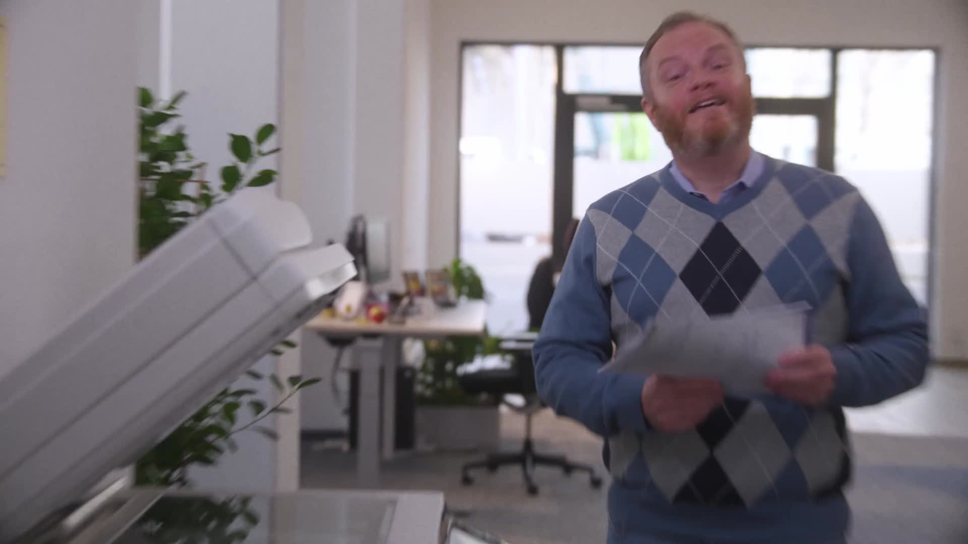 tolpatschig witzig freundlich Geschäftsfrau/Geschäftsmann